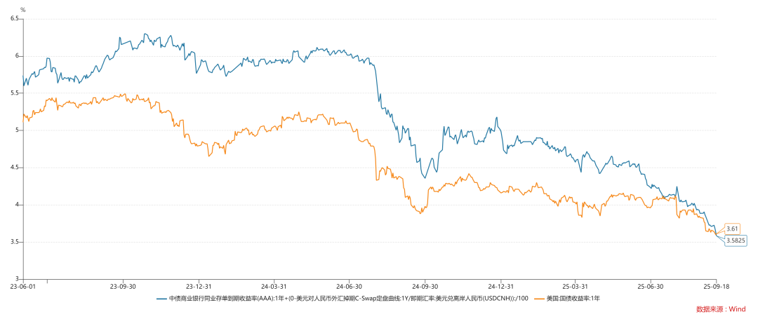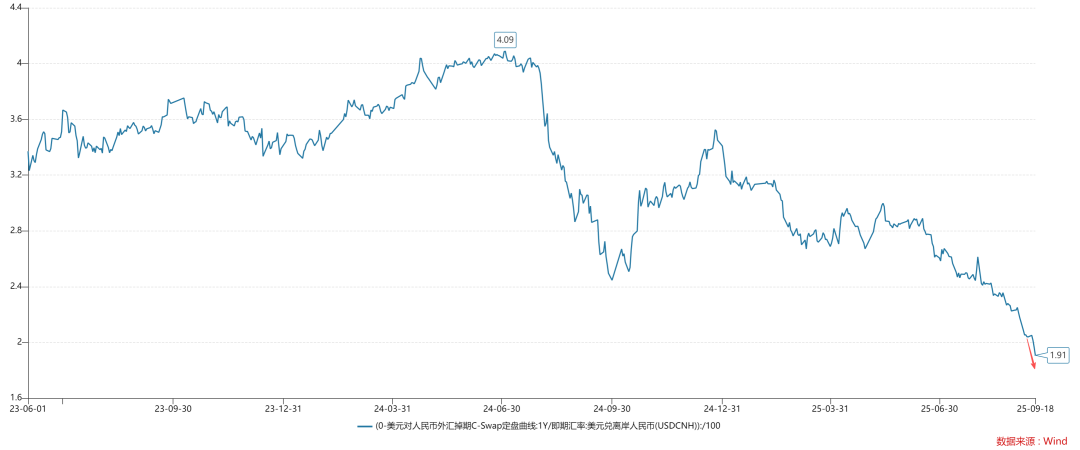 事实上,外汇掉期从更早的时候就开始反馈本次降息,9月5日,外汇掉期点为2.18%,到9月18日,大概下行了27bp。