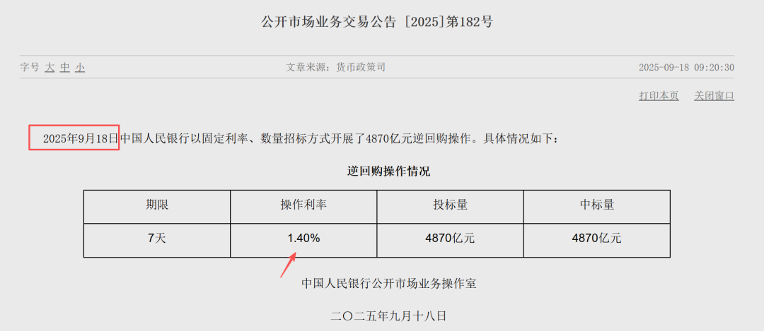 如上图所示,央行并没有降低官定政策利率7天公开市场逆回购操作利率,该利率保持在1.40%不变。